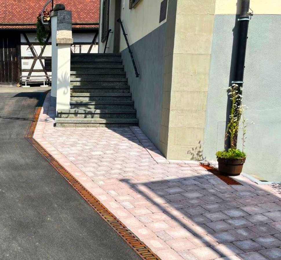 UNESCO-Welterbe trifft Hightech – ANRIN am Museum Welzheim Das historische Museum Welzheim ist ein bedeutender kultureller Ort, der die römische Geschichte der Region lebendig hält. Als zentraler Vermittlungsschwerpunkt für das UNESCO-Welterbe Limes in der Region Stuttgart präsentiert das Museum eine umfangreiche Sammlung römischer Artefakte, darunter über 300 Funde aus der Zeit der Kastelle von Welzheim. Im Rahmen der Neugestaltung des Museumsvorplatzes wurden 30 Meter unserer ANRIN Kantenschutzrinnen Typ KE-100 verbaut. Diese robusten und ästhetisch ansprechenden Rinnen gewährleisten eine zuverlässige Entwässerung des Museumsplatzes. Mit dem charakterstarken Design-Stegrost Massiv 32 aus unbeschichtetem Gusseisen fügt sich unser System nicht nur technisch perfekt ein – es unterstreicht auch gestalterisch die historische Atmosphäre des Museums.