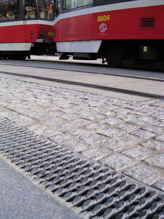 Prag ist eine der ältesten Städten in Europa mit langer Geschichte und hervorragender Kultur. Die historische Strassenbahn erinnert uns an die alten Zeiten der ersten Elektrizität und Entstehung von Industrie, Post und Stadtaufbau. Man genießt die langsame Fahr durch wunderschöne alte Stadtbezirke aus den Zeiten vor Internet und Facebook. Im Zuge der Sanierung großer Bereiche der Straßenentwässerung im Gebiet der Prager Innenstadt wurden mehrere Hundert Meter ANRIN KE-200 Rinnen eingebaut. Als Abdeckung wurde hier der Guss-Stegrost der Klasse E600 im OvalGrip Design gewählt, der sich besonders harmonisch in das historische Ambiente der Kopfsteinplasterflächen einfügt.